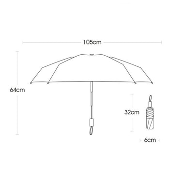 Stor storlek för två personer: Med en generös storlek på 105 cm i diameter när det är öppet, ger detta paraply tillräckligt med utrymme för att skydda två personer från regn. Det är perfekt för par, familjer eller vänner som vill dela på skyddet under en regnig dag. Den stora storleken kompromissar inte med portabiliteten, eftersom det fortfarande är lätt att fälla ihop och bära med sig.