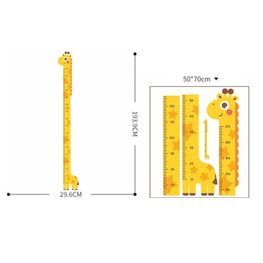 Tecknad väggdekal med längd tillväxtdiagram, självhäftande väggdekal för sovrum och vardagsrum - GiraffTillverkad av PVC, fint hantverk och luktfriVackra och finaKan appliceras på väggar och torra, släta och dammfria ytorUtmärkt dekoration för vardagLäs mer om produkten