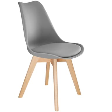 Ett elegant utseende och en diskret färgsättning kännetecknar dessa matstolar från tectake. I den böjda formen av sitsen med sin bekväma stoppning visar sig den höga komforten hos dessa moderna möbler i skandinavisk stil. Benen av massivt trä säkerställer hög stabilitet och belastningskapacitet. Smuts kan enkelt rengöras med en fuktig trasa så att du kan lägga din tid på att njuta av de charmiga matstolarna från tectake.