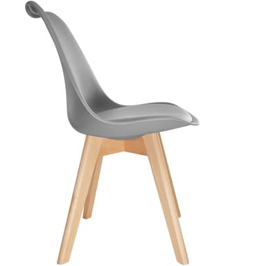 Ett elegant utseende och en diskret färgsättning kännetecknar dessa matstolar från tectake. I den böjda formen av sitsen med sin bekväma stoppning visar sig den höga komforten hos dessa moderna möbler i skandinavisk stil. Benen av massivt trä säkerställer hög stabilitet och belastningskapacitet. Smuts kan enkelt rengöras med en fuktig trasa så att du kan lägga din tid på att njuta av de charmiga matstolarna från tectake.