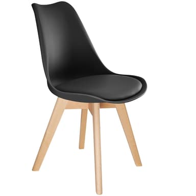 Ett elegant utseende och en diskret färgsättning kännetecknar dessa matstolar från tectake. I den böjda formen av sitsen med sin bekväma stoppning visar sig den höga komforten hos dessa moderna möbler i skandinavisk stil. Benen av massivt trä säkerställer hög stabilitet och belastningskapacitet. Smuts kan enkelt rengöras med en fuktig trasa så att du kan lägga din tid på att njuta av de charmiga matstolarna från tectake.