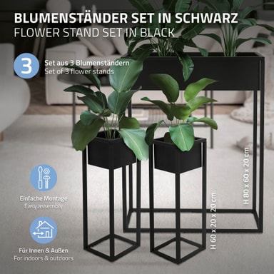 Setet med 6 blomställ från ML-Design gör att du kan arrangera blommor eller växter i din interiör på bästa möjliga sätt. Du behöver inte övertyga någon om fördelarna med växter och krukväxter i ditt hem - en lugnande look, ren luft, naturlig skönhet - allt detta får oss helt enkelt att må bättre. Men att exponera krukväxter på rätt sätt är inte längre en utmaning. En blomställning är inte bara en enkel bruksföremål, utan också en intressant dekoration i huset, på balkongen, terrassen eller i trädgården. Vårt blomställ med tillhörande planteringskärl, båda tillverkade av metall, övertygar med sin minimalistiska design och är en unik dekoration i sig.
