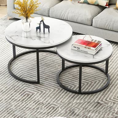 Modernt set med två runda soffbord - Vit/VitLäs mer om produkten