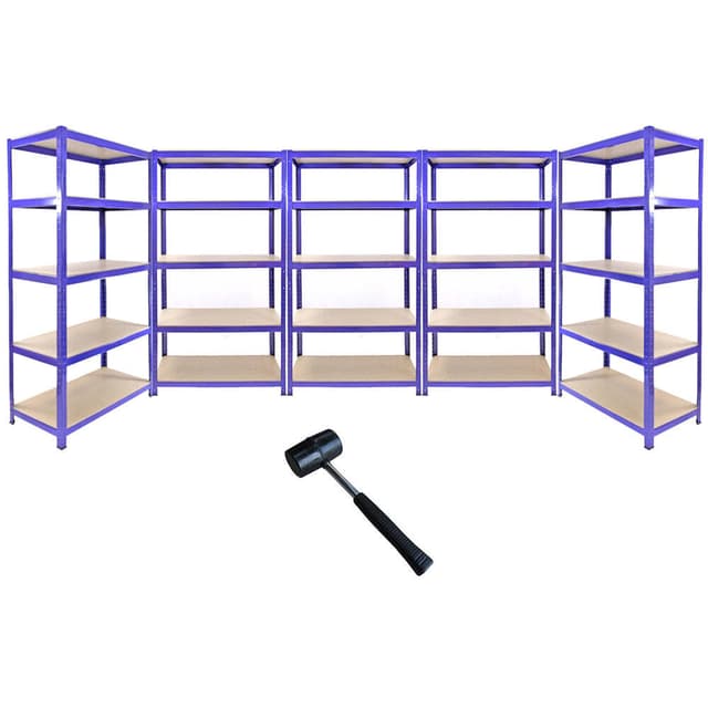 Monster Racking T-Rax metallförvaringshyllor, blå, 90 cm B, 45 cm D, set om 5