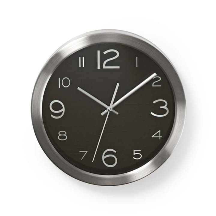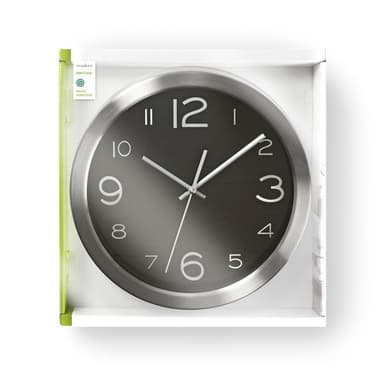 Nedis Väggklocka | Diameter: 300 mm | Rostfritt stål | Silver / Svart