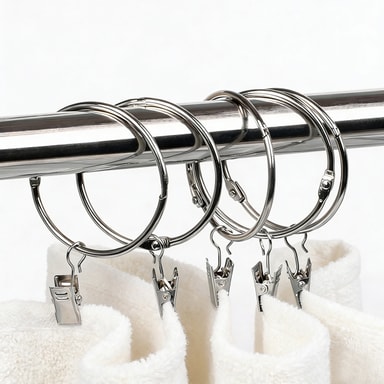Gardinringar med öppningsbara klämmor: Gör att du enkelt kan fästa eller ta bort gardiner på gardinstänger utan att behöva ta ner hela stången. Även ringarna kan öppnas så att även dessa enkelt kan tas av från gardinstången.
