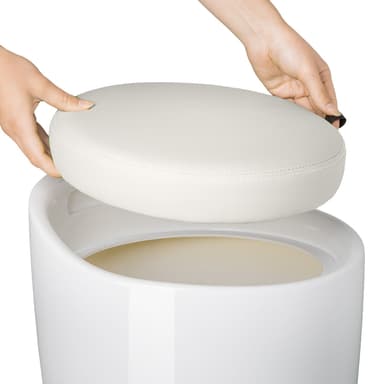 Vår pall av kraftig ABS-plast är den perfekta sittpallen. Denna pall har en löstagbar och bekväm stoppad sittdyna, i konstläder av hög kvalitet. Pallens utrymme erbjuder förvaringsutrymme för ert hem men även ett snyggt inredning tillskott. En praktiskt sittmöjlighet, oavsett om pallen används som tvättkorg i badrummet eller som leksakslåda i barnrummet. Tack vare dess lätta vikt på 2,85 kg och ett utskuret handtag i utkanten av pallen, kan ni snabbt och bekvämt placera pallen där ni behöver den. Det målade och robusta höljet, gör denna pall lättskött.
