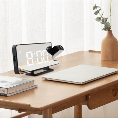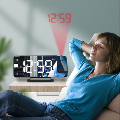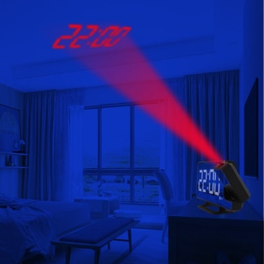 Vridbar projektor: Klockslaget kan projiceras till exempel på sovrumstaket eller väggen. Du kan själv ställa in vart du vill ha projektionen tack vare 180-graders-justering.