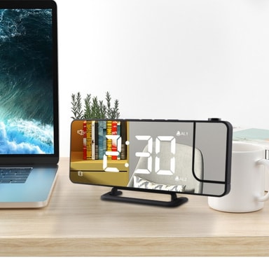 LED väckarklocka: Projektorklockan har snooze-funktion och är utrustad med en LED-display vars ljusstyrka kan justeras i 6 olika nivåer.