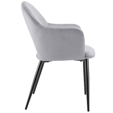 Stolarna erbjuder en elegant kombination av mjukt stoppade armstöd och ett böjt ryggstöd som skapar både stil och komfort. Den mjuka sammetsklädseln ger fåtöljerna en extra nivå av elegans och en behaglig sittupplevelse. Den bekväma stoppningen med högdensitetsskum gör att du kan sitta länge och njuta av matstunden i full komfort.