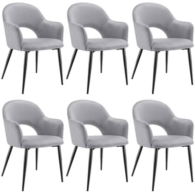 De eleganta fåtöljerna Sachel från tectake i 6-set imponerar med sin sofistikerade estetik och komfort. De höga, halvrunda ryggstöden och de mjukt vadderade sitsarna ger inte bara ett visuellt intryck utan är också ergonomiskt utformade för att anpassa sig till din kropp. Perfekta för både matrum och vardagsrum – dessa fåtöljer tillför en lyxig och stilfull touch till varje rum.