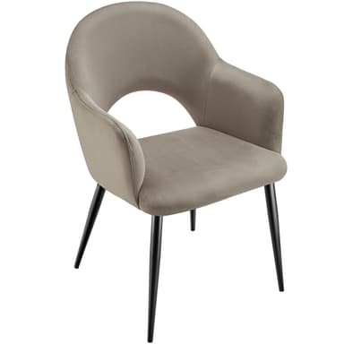 Stolarna erbjuder en elegant kombination av mjukt stoppade armstöd och ett böjt ryggstöd som skapar både stil och komfort. Den mjuka sammetsklädseln ger fåtöljerna en extra nivå av elegans och en behaglig sittupplevelse. Den bekväma stoppningen med högdensitetsskum gör att du kan sitta länge och njuta av matstunden i full komfort.