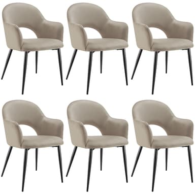 De eleganta fåtöljerna Sachel från tectake i 6-set imponerar med sin sofistikerade estetik och komfort. De höga, halvrunda ryggstöden och de mjukt vadderade sitsarna ger inte bara ett visuellt intryck utan är också ergonomiskt utformade för att anpassa sig till din kropp. Perfekta för både matrum och vardagsrum – dessa fåtöljer tillför en lyxig och stilfull touch till varje rum.