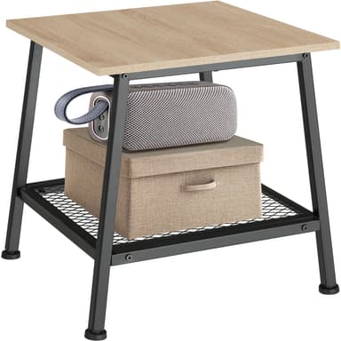 Det stilrena enkla utseendet gör det lilla sängbordet Bedford by tectake till ett underbart tillskott till alla befintliga möbler. Den tilltalande ytan i trälook kompletteras av en svart stålram med skruvfötter, vilket står för den höga stabiliteten och spänsten. Med sitt lilla fotavtryck nästlar sig den lätta möbeln utan ansträngning mot nästan vilken vägg som helst och skär även en fin figur när den står fristående i vardagsrummet, matsalen eller sovdelen. Gallerhyllan i det nedre området skapar ytterligare förvaringsutrymme på en andra nivå och understryker det här sidobordets grova industriella stil. Snygg design och ett fantastiskt förvaringsalternativ, sängbordet Bedford från tectake.