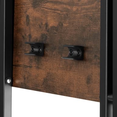 Hög funktionalitet och ett brett användningsområde kännetecknar det praktiska setet med 2 Phoenix sidobord från tectake. Den platsbesparande vikmekanismen, de justerbara ledade fötterna och den låga vikten gör den praktiska sidan av den lättskötta duon. De stabila hyllorna med sin fina ådring i trä-look vilar på smala stålramar, vilket gör konstruktionerna utan krusiduller till typiska representanter för den grova industristilen. Med undantag för de skruvade fötterna är de två möblerna lätta att kombinera helt färdigmonterade och är därför klara att användas på några sekunder efter leverans - packa bara upp och prova dem. Köp dessa supersmarta sidoborden från tectake redan nu!