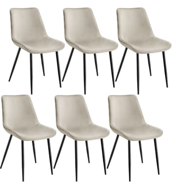 Med sina stående ben i stål och eleganta överdrag i en sofistikerad sammetslook, utstrålar de 6 dekorativa Monroe-stolarna från tectake både komfort och stil – en fröjd för ögat redan vid första anblicken. Dessutom har detta set med 6 stolar mycket mer att erbjuda såsom sittdynans ergonomiska design och den bekväma klädseln. Tack vare den snygga, diskreta designen kan dessa dekorativa möbler också enkelt integreras i din befintliga inredning hemma. Utöver sitt snygga utseende, skyddar även stolarna ditt golv med golvskyddande plastkåpor på fötterna. Stolarna har vad som krävs vad gäller stabilitet, spänst och hållbarhet - allt som allt en riktigt flexibel grupp med stolar. Ge ditt hem en härlig inbjudande känsla med dessa mysiga och stabila stolar från tectake.