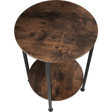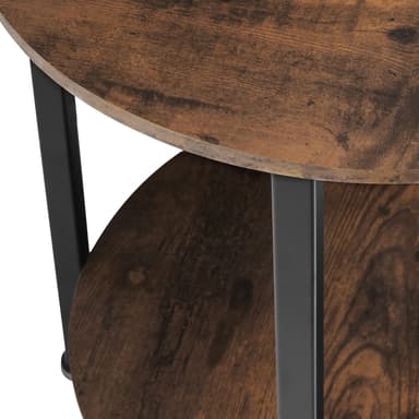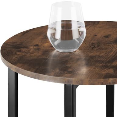 Det dekorativa sidobord Ballina från tectake ger rustik charm till ditt hem. Den enkla designen i en minimalistisk industriell look gör detta runga bord till ett härligt blickfång. Två öppna ytor ger gott om plats för förvaring av vardagliga föremål eller för stilfulla dekorationer. Den svarta stålramen säkerställer hög stabilitet och bildar en harmonisk kontrast till de lättare elementen i trälook - funktionellt och ändå smakfullt: det trendiga sidobordet Ballina.