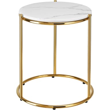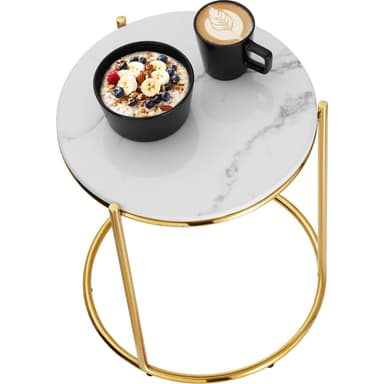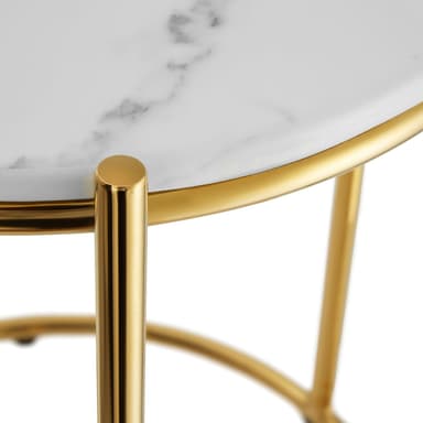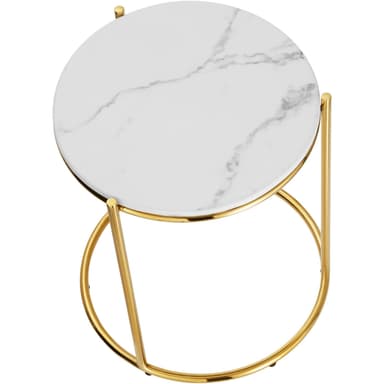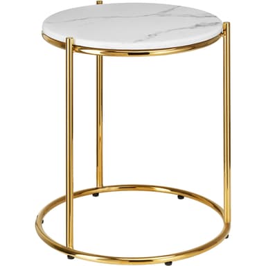 Det runda soffbordet imponerar med en avtagbar skiva av marmor, som inte bara ser särskilt elegant ut, utan också är mycket hållbar. Bordet har även en robust och elegant stålram som säkerställer högsta stabilitet och maximal belastningskapacitet. Sidobordets ram är dessutom utrustad med höjdjusterbara och halkfria plastfötter som säkerställer ett säkert grepp på alla underlag.