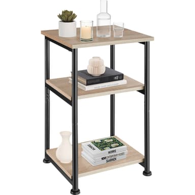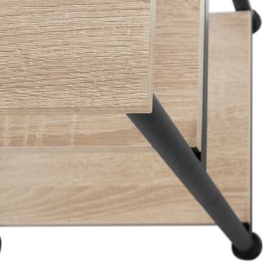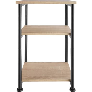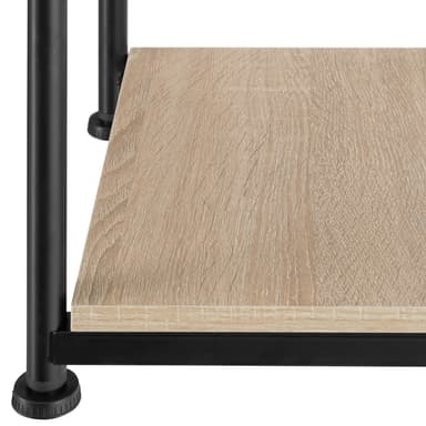 Ta in den omisskännliga stilen i den industriella stilen i ditt hem med det rustika sidobord Memphis från tectake. Sidobordets speciella kombinationen av varmt och kallt i form av trä och järn ger en visuell kontrast med en vinnande effekt. Tack vare det lilla utrymmesbehovet och det krångliga utseendet hittar den lättskötta möbeln en perfekt plats i varje lägenhet. Både den skyddande melaminbeläggningen och de tre hyllornas goda stabilitet samt den enkla monteringen är ytterligare fördelar med denna extremt praktiska konstruktion - linjär, slående, genomtänkt: det charmiga sidobord Memphis från tectake.