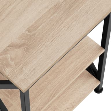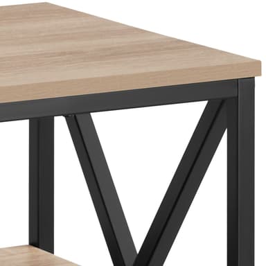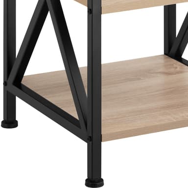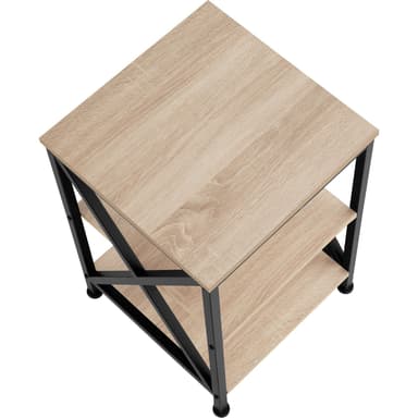 Det solida Nottingham sidobordet från tectake tillför en rustik charm till ditt hem. Den eleganta trälooken i kombination med den svarta stålramen och de distinkta diagonala strävorna skapar en vacker, färgkoordinerad kontrast. De 3 nivåerna erbjuder både praktiska förvaringsytor och en plats för att visa upp älskade föremål. Med sin fyrkantiga form och kompakta mått är detta mångsidiga sidobord perfekt för tidigare oanvända hörn och nischer, och smälter enkelt in i din inredning med sitt diskreta, stilrena utseende. Ett perfekt tillskott till sovrum, vardagsrum eller kontor.