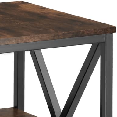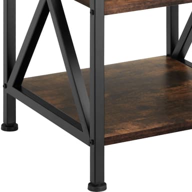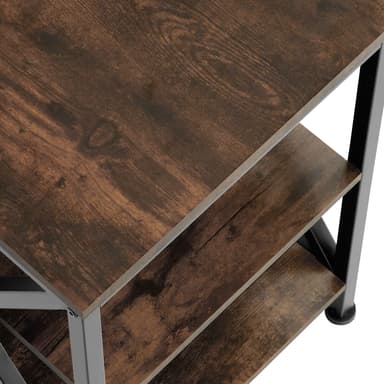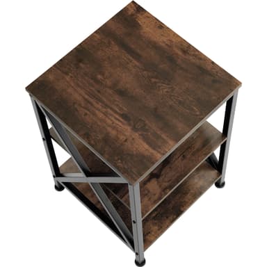 Det solida Nottingham sidobordet från tectake tillför en rustik charm till ditt hem. Den eleganta trälooken i kombination med den svarta stålramen och de distinkta diagonala strävorna skapar en vacker, färgkoordinerad kontrast. De 3 nivåerna erbjuder både praktiska förvaringsytor och en plats för att visa upp älskade föremål. Med sin fyrkantiga form och kompakta mått är detta mångsidiga sidobord perfekt för tidigare oanvända hörn och nischer, och smälter enkelt in i din inredning med sitt diskreta, stilrena utseende. Ett perfekt tillskott till sovrum, vardagsrum eller kontor.