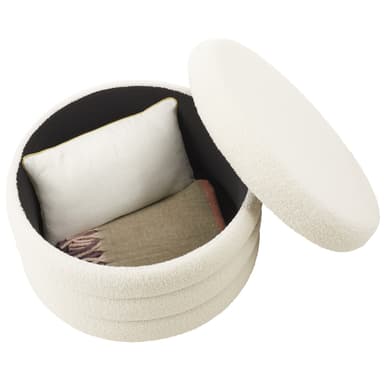 Sittpuffen med förvaring är tillverkad av en solid MDF-skiva och utmärker sig med sin höga stabilitet och belastningskapacitet. Puffens undersida är försedd med skonsamma och halkfria möbeltassar som säkerställer en hög stabilitet på alla golv.