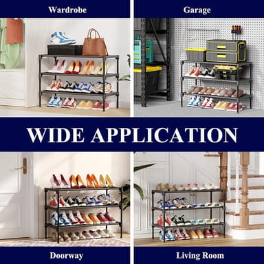 Robust metallkonstruktion: Den här skohyllan är byggd med en stark metallram och erbjuder utmärkt stabilitet och viktkapacitet. Den slitstarka konstruktionen garanterar långvarig prestanda, även vid regelbunden användning. Den eleganta svarta finishen ger en touch av modern elegans till alla rum.