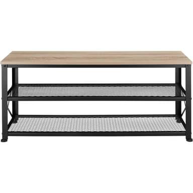 Det inbjudande Blackpool skostället från tectake, i en stilren industriell design, välkomnar dig hem. På den robusta MDF-bänken med elegant trälook kan du enkelt byta från sportiga träningsskor till avslappnade tofflor. Skåpet erbjuder gott om förvaringsutrymme för alla dina skor och gör dem lättillgängliga när du behöver dem. 4 höjdjusterbara skruvfötter med golvskyddande plastkåpor säkerställer stabilitet. Den avlånga designen och det grunda djupet gör att den lättskötta möbeln passar in i de flesta hallar eller kontor, trots sitt rymliga förvaringsutrymme. Håll ordning på alla dina favoritskor med det stiliga Blackpool skostället från tectake.