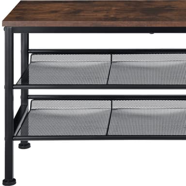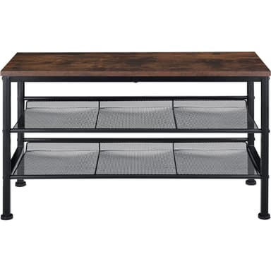 Det stiliga Derry skostället från tectake gör en vacker accent i varje hall. Designmässigt fokuserar denna möbel på den minimalistiska industriella stilen, som kännetecknas av en harmonisk kombination av varmt trä och svalt stål. De 2 täta gallerhyllorna kan monteras både plant eller i vinkel, beroende på dina behov, och är perfekta för att förvara och enkelt nå skor och andra nödvändigheter. Trots sina kompakta mått erbjuder den robusta konstruktionen gott om förvaringsutrymme för sneakers, tofflor, klackar och mer, både i hemmet och på kontoret. Oavsett väder: Använd Derry skostället för att alltid ha dina favoritskor nära till hands när du behöver dem.
