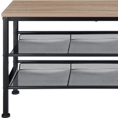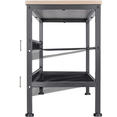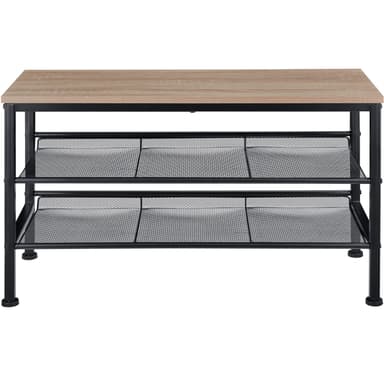 Det stiliga Derry skostället från tectake gör en vacker accent i varje hall. Designmässigt fokuserar denna möbel på den minimalistiska industriella stilen, som kännetecknas av en harmonisk kombination av varmt trä och svalt stål. De 2 täta gallerhyllorna kan monteras både plant eller i vinkel, beroende på dina behov, och är perfekta för att förvara och enkelt nå skor och andra nödvändigheter. Trots sina kompakta mått erbjuder den robusta konstruktionen gott om förvaringsutrymme för sneakers, tofflor, klackar och mer, både i hemmet och på kontoret. Oavsett väder: Använd Derry skostället för att alltid ha dina favoritskor nära till hands när du behöver dem.