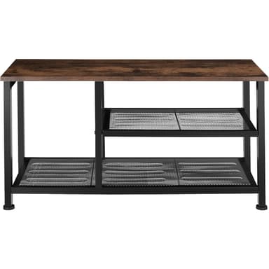Utöka ditt förvaringsutrymme på ett både enkelt och elegant sätt och skapa ordning och reda med Taunton öppna skoställ från tectake. Sneakers, klackskor, sliders, stövlar och andra skor får enkelt plats på de två tätmaskade gallerhyllorna. Skåpets funktionella konstruktion får sin unika charm från den svarta stålramen i kombination med den stiliga ådringen hos den stabila MDF-skivan, vilket ger ett distinkt industriellt uttryck. Den lyckade materialblandningen gör skohyllan mångsidig och passar inte bara perfekt i moderna loftlägenheter, utan även för förvaring av tillhörigheter i kontorsutrymmen och andra miljöer. Använd tectake Taunton skoställ för att skapa ordning och stil i ditt hem.
