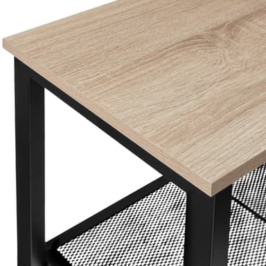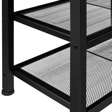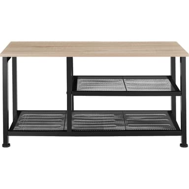 Utöka ditt förvaringsutrymme på ett både enkelt och elegant sätt och skapa ordning och reda med Taunton öppna skoställ från tectake. Sneakers, klackskor, sliders, stövlar och andra skor får enkelt plats på de två tätmaskade gallerhyllorna. Skåpets funktionella konstruktion får sin unika charm från den svarta stålramen i kombination med den stiliga ådringen hos den stabila MDF-skivan, vilket ger ett distinkt industriellt uttryck. Den lyckade materialblandningen gör skohyllan mångsidig och passar inte bara perfekt i moderna loftlägenheter, utan även för förvaring av tillhörigheter i kontorsutrymmen och andra miljöer. Använd tectake Taunton skoställ för att skapa ordning och stil i ditt hem.