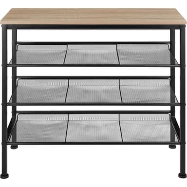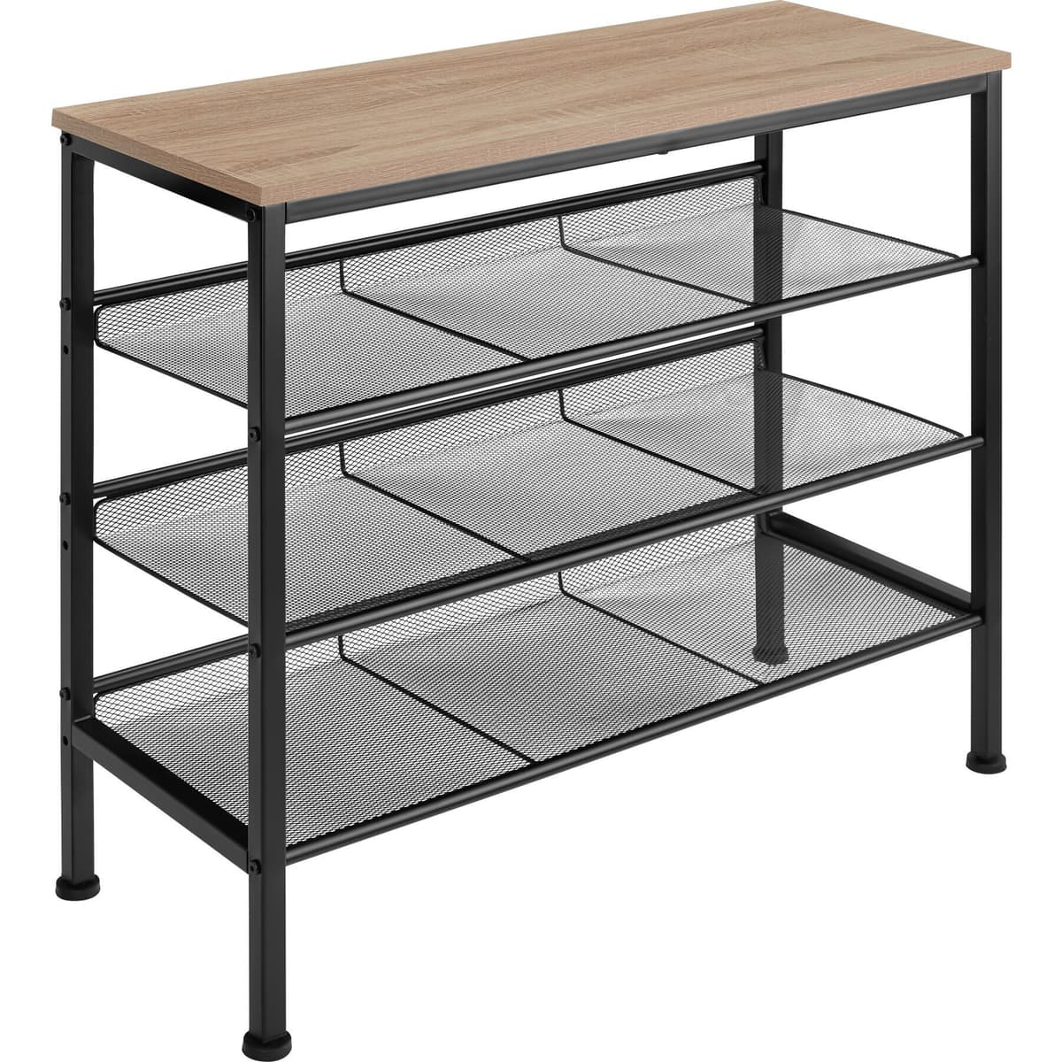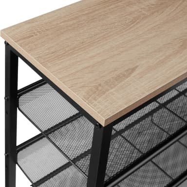 Med det välorganiserade Wolverhampton skostället från tectake hålls skor, sneakers, tofflor, sandaler och mer alltid prydligt ordnade, lättillgängliga och redo att användas. De 3 täta gallret kan monteras både plant eller i vinkel och erbjuder gott om förvaringsutrymme, både i hemmet och på kontoret. Den robusta stålramen och de höjdjusterbara plastkåporna säkerställer både stabilitet och hållbarhet. Designmässigt imponerar skostället med sin enkla men stilrena kombination av trä och stål, vilket ger varje rum en rustik, industriell känsla. Förvara dina skor effektivt och skapa ordning i din hall med Wolverhampton skostället från tectake.
