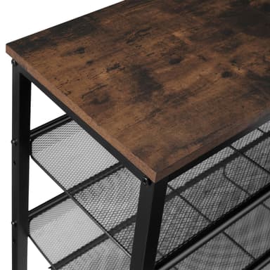 Med det välorganiserade Wolverhampton skostället från tectake hålls skor, sneakers, tofflor, sandaler och mer alltid prydligt ordnade, lättillgängliga och redo att användas. De 3 täta gallret kan monteras både plant eller i vinkel och erbjuder gott om förvaringsutrymme, både i hemmet och på kontoret. Den robusta stålramen och de höjdjusterbara plastkåporna säkerställer både stabilitet och hållbarhet. Designmässigt imponerar skostället med sin enkla men stilrena kombination av trä och stål, vilket ger varje rum en rustik, industriell känsla. Förvara dina skor effektivt och skapa ordning i din hall med Wolverhampton skostället från tectake.
