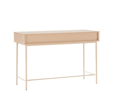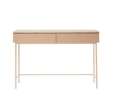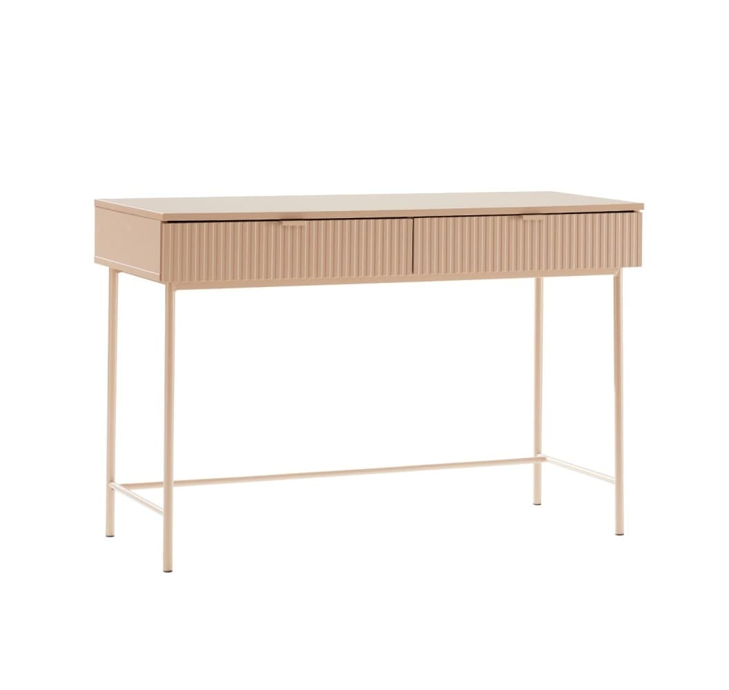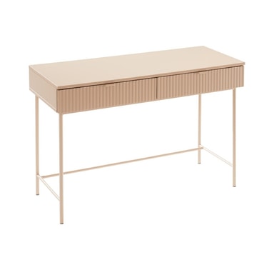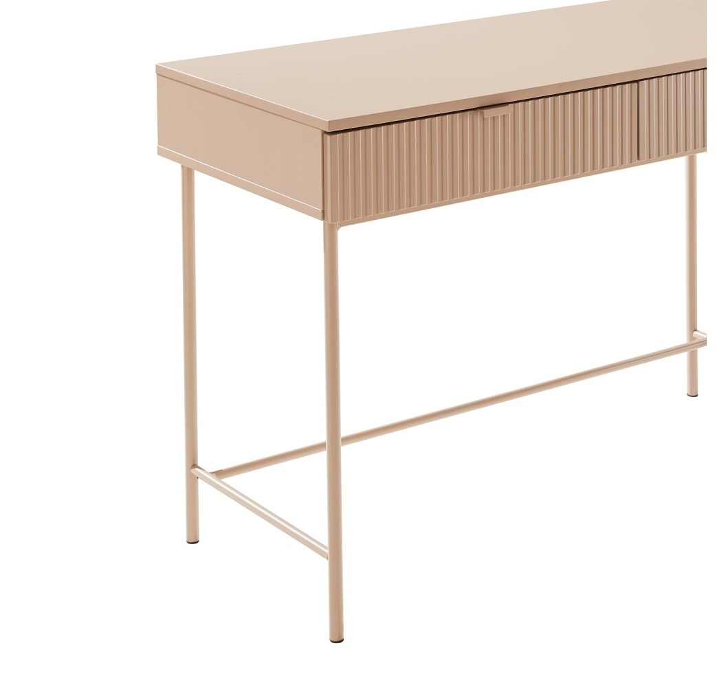 Skrivbord SEQUENCE 120x50xH79cm, cappuccino. Bordsskivan och kroppen är gjorda av möbelskiva. Lådfronter: dekorativ räfflad MDF-panel. Bordet är avslutat med slitstark polyuretanfärg. Bordsbenen och basramen är gjorda av metall och pulverlackerade.