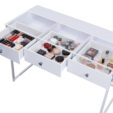 Den har 3 stora förvaringslådor som glider jämnt och tyst, och ger rikligt med plats för alla dina skönhetsartiklar.