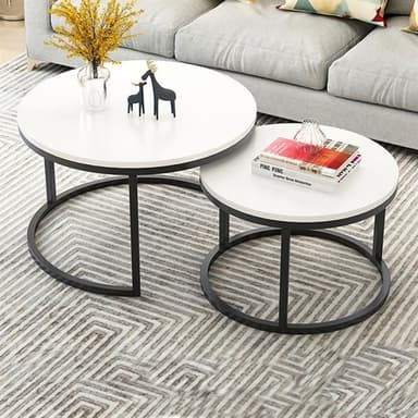 Snyggt set med två runda soffbord - Vit/VitLäs mer om produkten
