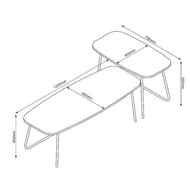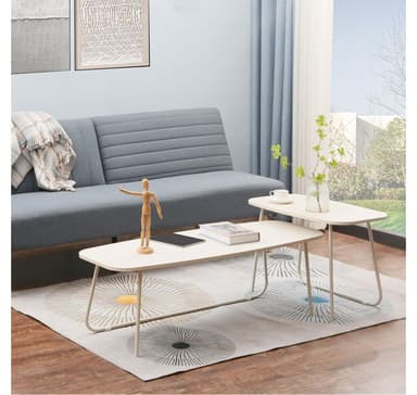 Soffbord DUO 2st set 120x48xH40cm, 75x40xH48cm, ljust trä/beige.Material: melaminskiva.Färg: ljust trä/beige.Bordens ben och ramar är gjorda av metall och avslutade med beige pulverlack.Läs mer om produkten