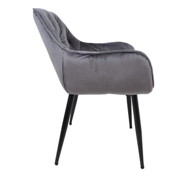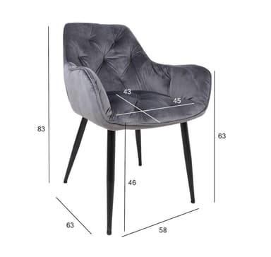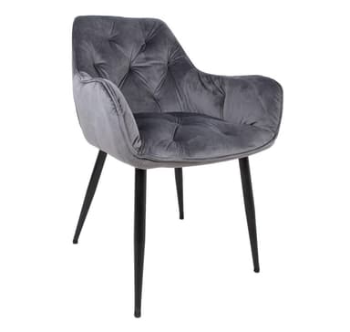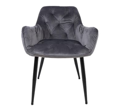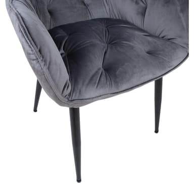 Stol BRITA grå. Den bekväma sitsen är lätt vadderad och helt täckt med grått sammetstyg. Sitthöjden är 47,5 cm. Överdragsmaterial: 100 % polyester, Martindale 25 000. Sitsram: metall och plywood. Klädsel: polyuretanskum. Svarta pulverlackerade metallben. Stolens totala mått är 58x63H83cm. Sittbredd 40cm, sittdjup 43cm, sitthöjd 47cm. Rygghöjd 43 cm. Viktgräns 120 kg.