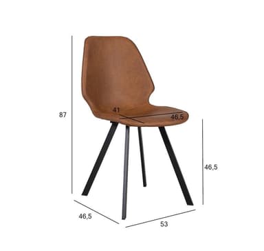 Stol HELENA 46,5x53xH87cm. Stolens bekväma sits är klädd med ljusbrunt mockaliknande polyestertyg. Benen är gjorda av metall och avslutade med en svart pulverlackering. Sitthöjd 46,5cm, sitsbredd 46,5cm, sittdjup 41cm, ryggstödshöjd 44cm. Viktgräns 100 kg.