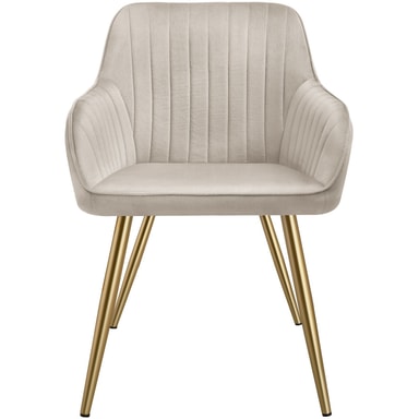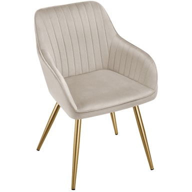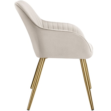 Stolen Marilyn från tectake imponerar med sin kombination av en lyxigt mjuk sammetklädsel med ett diskret quiltat mönster och eleganta, gyllene stålbenen. Med denna trendiga stol blir varje rum en oas av välbefinnande där komfort och design går hand i hand.