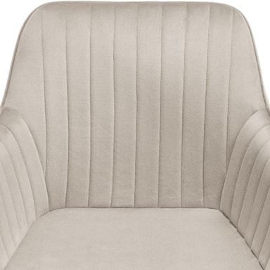 Den ädla sammetklädseln ger en lyxig känsla medan den ergonomiska designen lovar en förstklassig sittupplevelse även under långa middagskvällar. Det genomgående arm- och ryggstödet som omsluter den generösa sittytan, tillsammans med den bekväma stoppningen, ger dig optimalt stöd för en hälsosam position.