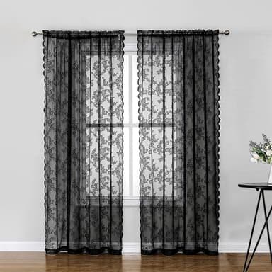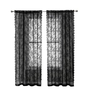 Fina spetsgardiner i vintagestil som ger rummet en vacker, romantisk atmosfär. Lätt att montera, dras enkelt på en gardinstång.