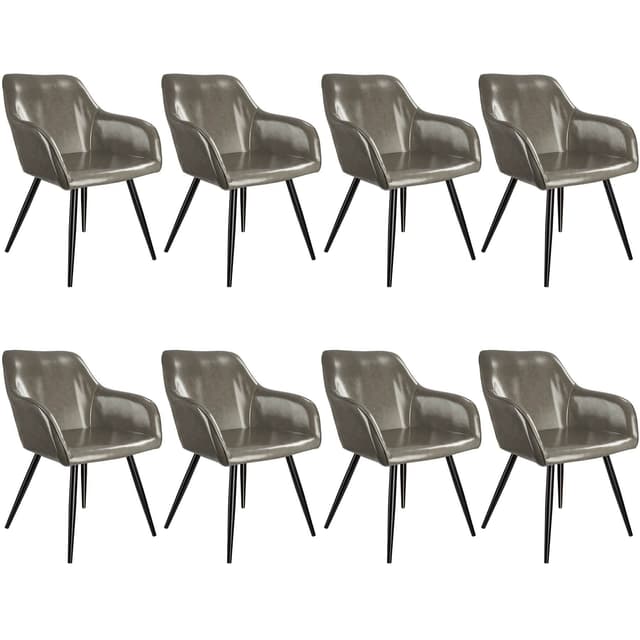 tectake 8x Stol Marilyn konstläder 62 x 58 x 82 cm Mörkgrå/Svart