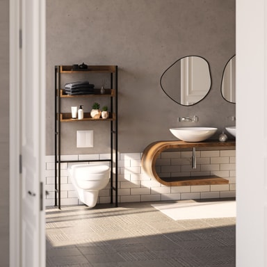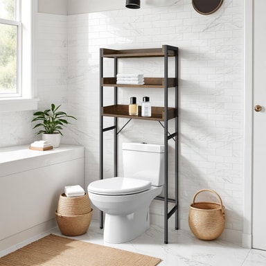 Platsbrist i badrummet var igår! Med badrumshylla Seattle från tectake kan du utnyttja det lediga utrymmet ovanför tvättkorgar eller annan inredning optimalt. Med hyllans slimmade design passar den tåliga stålramen lätt in i smala badrum. De rymliga hyllorna imponerar inte bara med sitt eleganta utseende, utan också med de extra kantlisterna, som på ett tillförlitligt sätt håller de förvarade sakerna på plats i ditt badrum. Hyllans individuellt höj- och sänkbara skruvfötterna och den medföljande tippskyddet säkerställer ett stabilt stativ. Oavsett var du placerar den – den fristående hyllan från tectake skär en fin figur överallt. Köp hem din nya badrumshylla och skapa mer utrymme i ditt badrum.