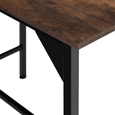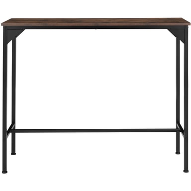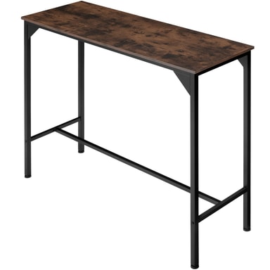 Med detta smala barbord Kerry från tectake får du ett praktiskt, stilrent och platsbesparande högt barbord som passar sömlöst tillsammans med andra möbler och inredningsdesign. Bordets öppna upprättstående konstruktion förmedlar en känsla av lätthet och är ändå mycket stabila och extremt tåliga och, tack vare de justerbara skruvfötterna, dessutom extremt stabila. En smakfull ådring pryder den massiva toppen i en varm trälook, medan den svala stålramen ger den grova touchen och kompletterar varandra perfekt i den industriella stilen. Bordets höga höjd gör att stolar och barstolar kan stoppas under för förvaring när de inte används, så att din matset inte tar upp onödig plats i ditt hem. Tack vare utseendet utan krusiduller ger barbordet ett smakfullt intryck i hallen, köket, kontoret, matsalen eller vardagsrummet.