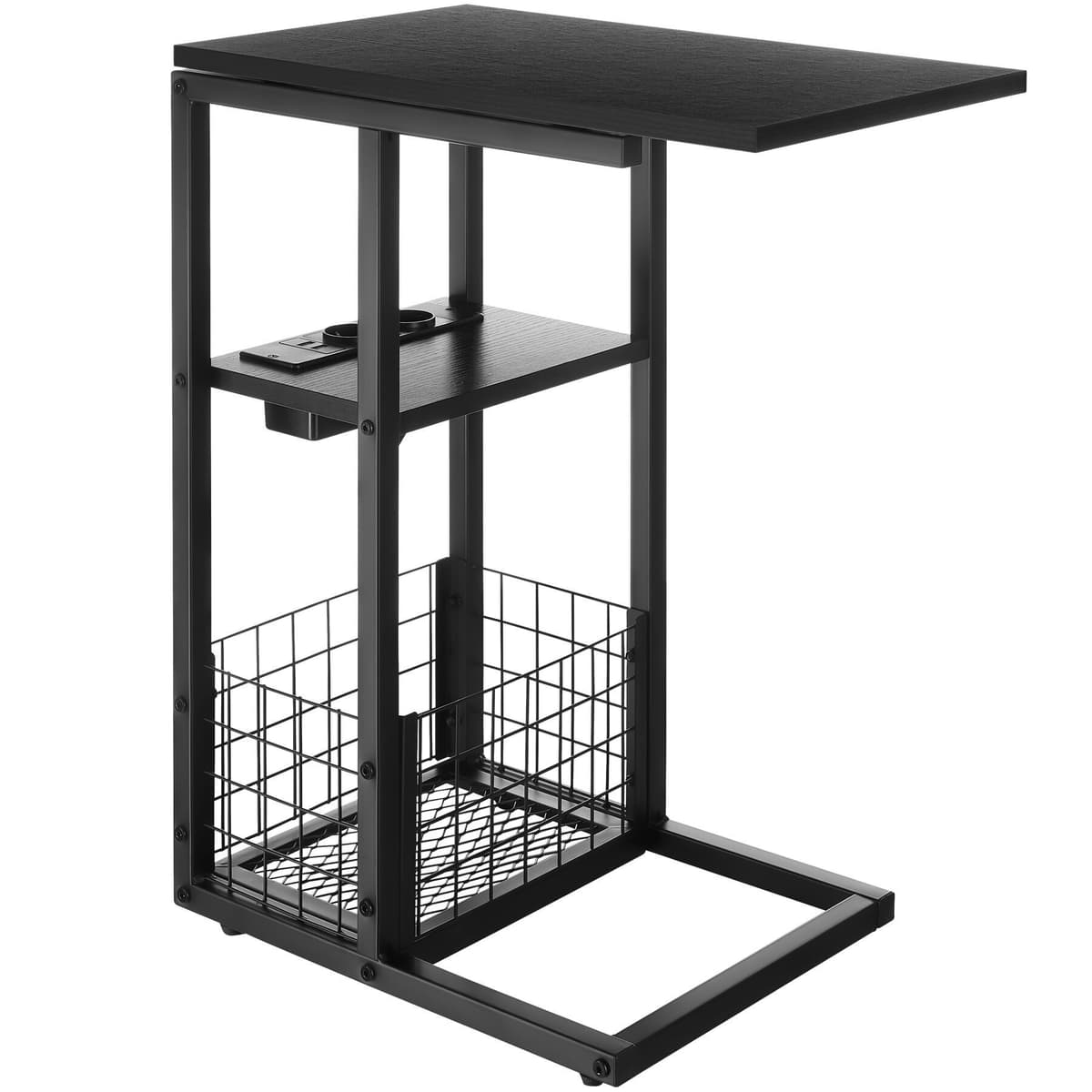 En särskild fördel med laptopbordet Rhea är den integrerade laddstationen med lång strömkabel. Du behöver bara ett eluttag för att ansluta laddstationen, och sedan har du två AC-uttag och två USB-uttag till hands för bekväm laddning av alla dina enheter direkt vid arbetsplatsen. Förvaringsytan vid laddstationen erbjuder även plats för småsaker som pennor, mobiltelefon eller snacks – allt du behöver inom räckhåll för en produktiv arbetsdag.