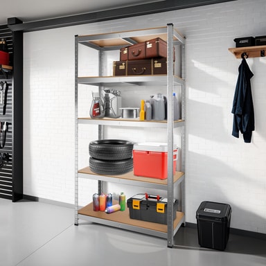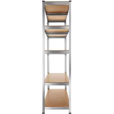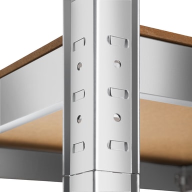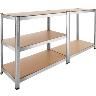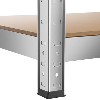 Med denna stabila lagerhylla får du snabbt ordning och reda. Hyllplanen kan monteras på valfri höjd, så att du kan anpassa hyllan exakt efter dina behov. Förvaringshyllan kan dessutom enkelt konverteras till en arbetsbänk med praktiska hyllplan under. Detta hyllsystem har många användningsområden och passar lika bra i garaget som i verkstaden eller förrådet. Lagerhyllan har rundade hörn och stabila tvärstag för ökad stabilitet och säkerhet. Skapa bättre ordning på dina saker med en robust förvaringshylla från tectake.