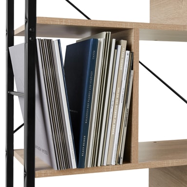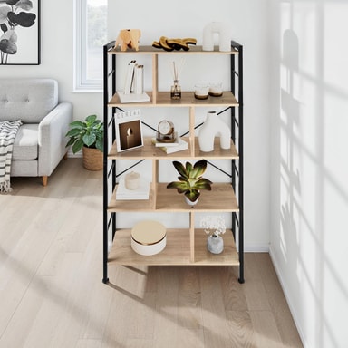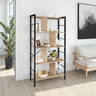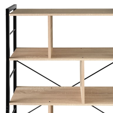 Designad i en industriell stil med en perfekt kombination av varmt trä och kallt stål, erbjuder den charmiga hyllan Charleston från tectake både praktisk funktion och stilren estetik. Bokhyllans fyra hyllplan, förstärkta med tvärstag på sidorna, ger gott om utrymme för böcker, vackra bilder, vaser och dina andra favoritsaker. Förvaringshyllans distinkta och industriella stil, som är både uttrycksfull och reserverad, låter dina dekorativa objekt stå i centrum. Bokhyllans justerbara skruvfötter säkerställer god stabilitet och gör denna robusta möbel till ett pålitligt val för ditt hem. Den karaktärsfulla hyllan Charleston från tectake – en möbel som gör intryck.
