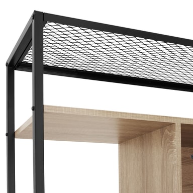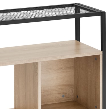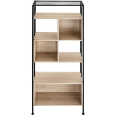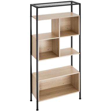 Sätt en ny accent i ditt hem med den trendiga hyllan Hastings från tectake. Den svarta stålramen skapar en stilren kontrast mot de varma träelementen, vilket är kännetecknande för den populära fabrikslooken. Förvaringshyllans unika kombination av fack och hyllplan ger inte bara praktiska förvaringsmöjligheter utan också en personlig touch till din inredning. Med sin rustika charm och sitt stilrena designkoncept passar bokhyllan perfekt i olika inredningsstilar. Ett verkligt blickfång för varje hem – det anmärkningsvärda hyllsystemet från tectake.